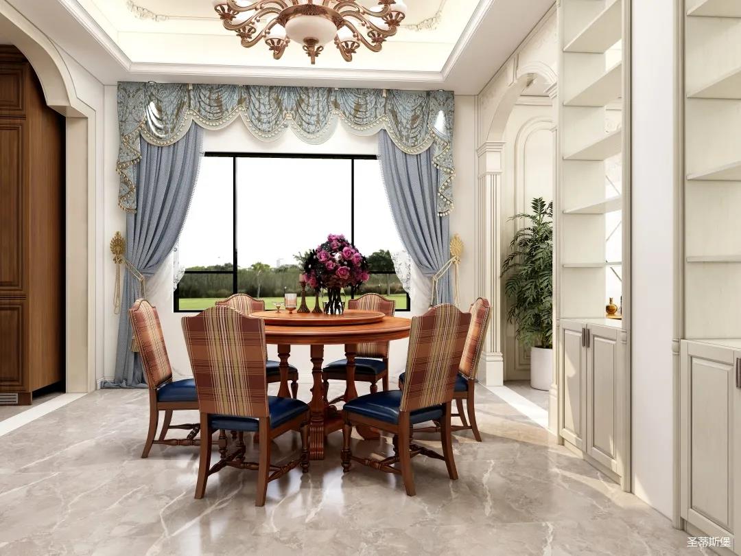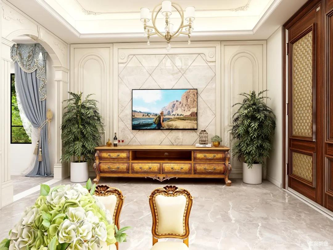 新古典风格中填入少量的传统装饰,与美式和谐相融。精细的实木手工雕刻,传统形状的基础韵味与美式的细节取长补短。不但富有审美的愉悦,更重要的是令居住舒适而贴近自然。背景墙更是复古与潮流的完美结合,具有经典却简洁的图案、复古却时尚的色彩,既包含了古典风格的文化底蕴,也体现了现代流行的元素。