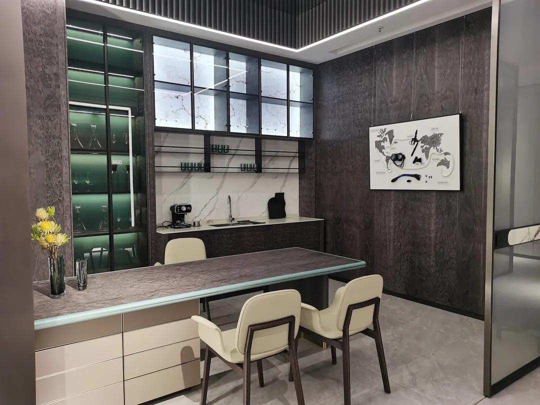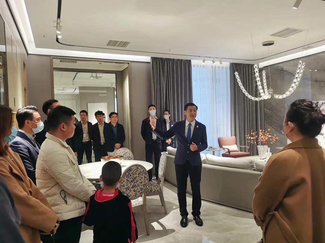 在新品系列展厅内,hth.com华体会集团集团营销部总经理陈玉伟先生对【圣蒂斯堡.迪尚】新品、及【圣蒂斯堡.新古典】升级新品的产品革新、空间打造、及营销赋能、拎包项目优势、未来市场剖析等方面进行了多维度的阐述。他表示随着消费者审美升级,对于高品质高颜值家居的追求也与日俱增,圣蒂斯堡“移动家具+整装定制”的整合优势一直紧贴时代趋势和潮流,必将赢得更加广阔的市场蓝海、和更多的消费者认可和信赖。